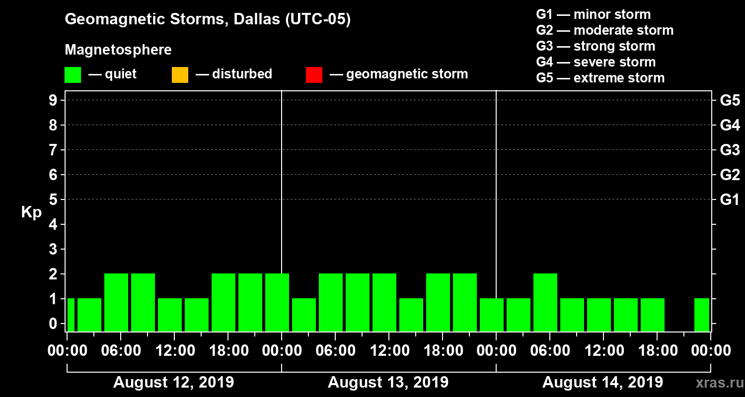 Geomagnetic storms in Dallas in August 2019