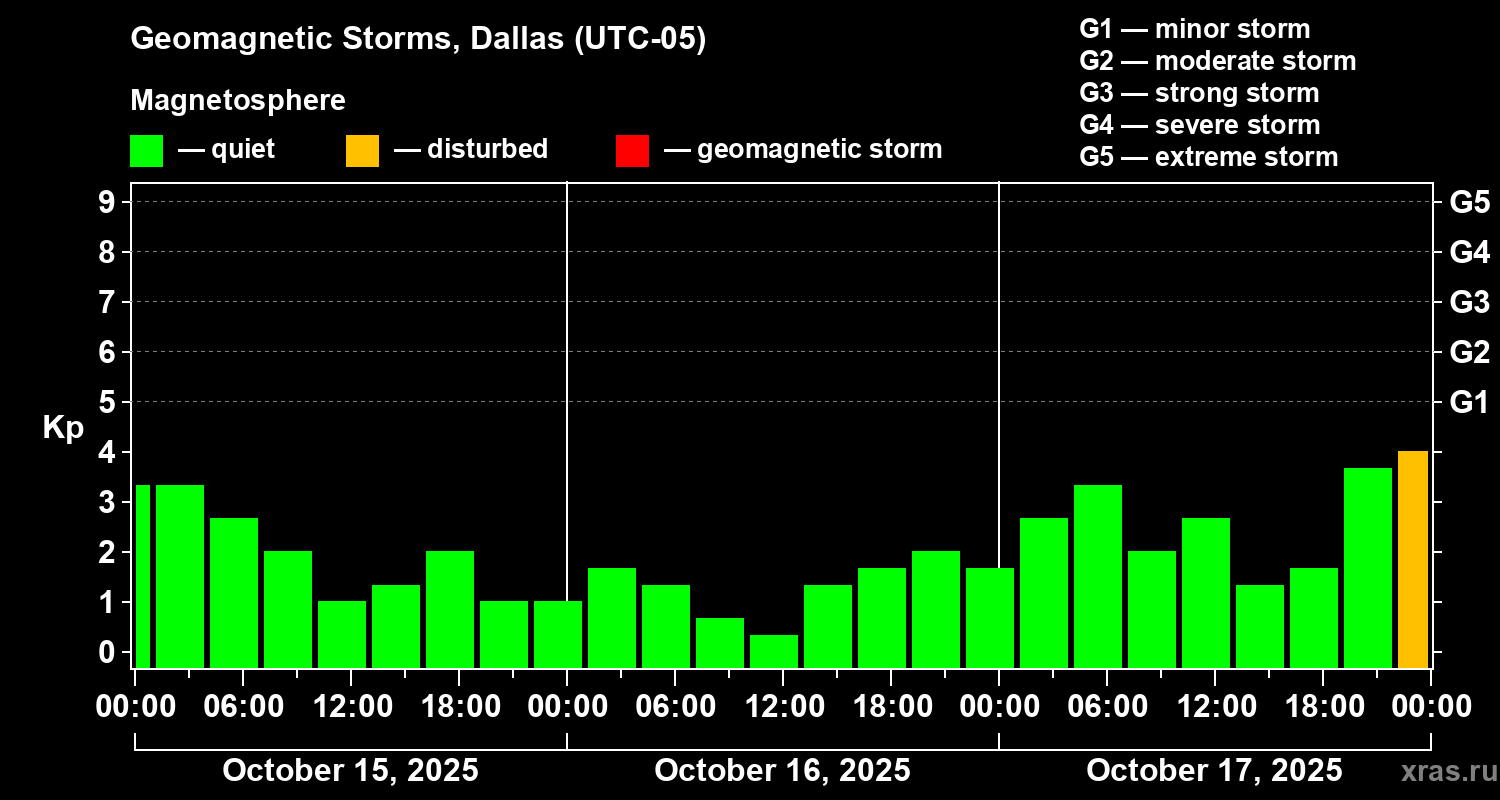 Geomagnetic storms in Dallas — Oct 17, 2025