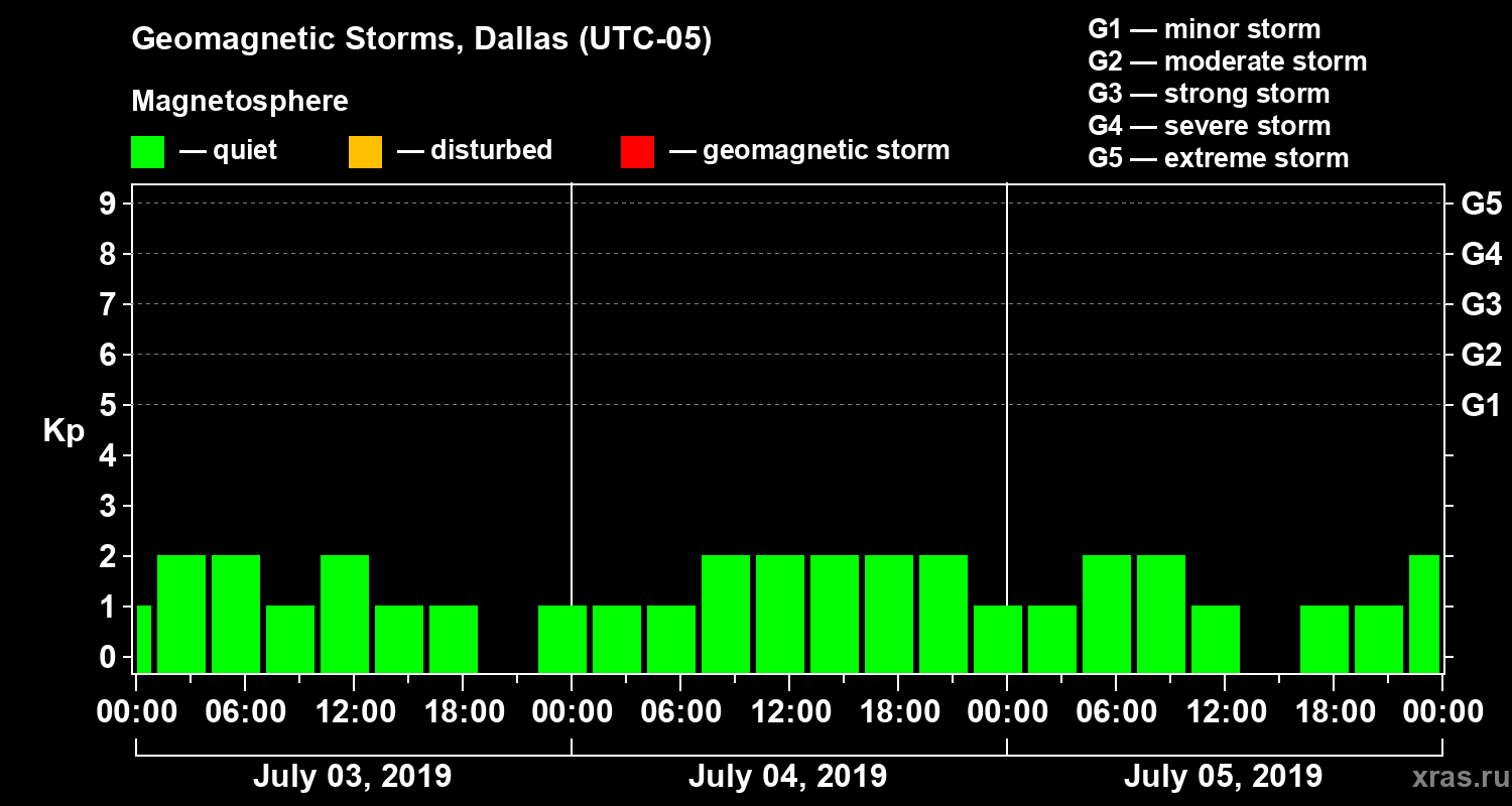 Geomagnetic storms in Dallas on Jul 05, 2019