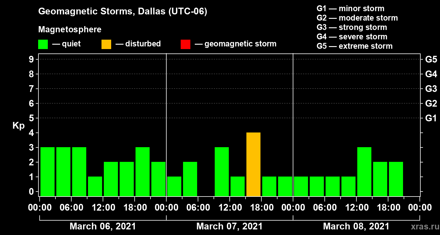 Geomagnetic storms in Dallas — Mar 08, 2021