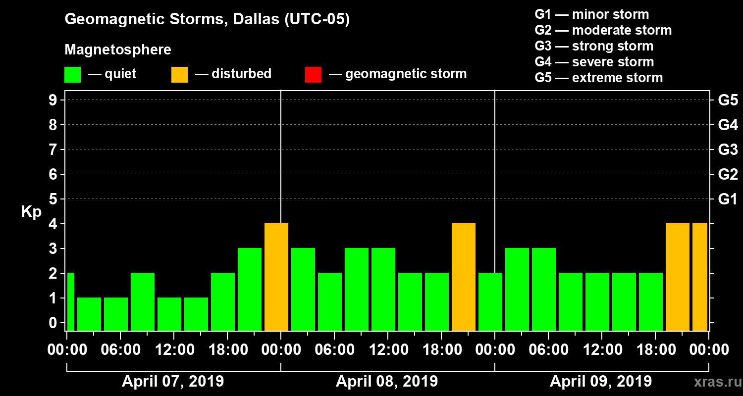 Geomagnetic storms in Dallas — Apr 09, 2019
