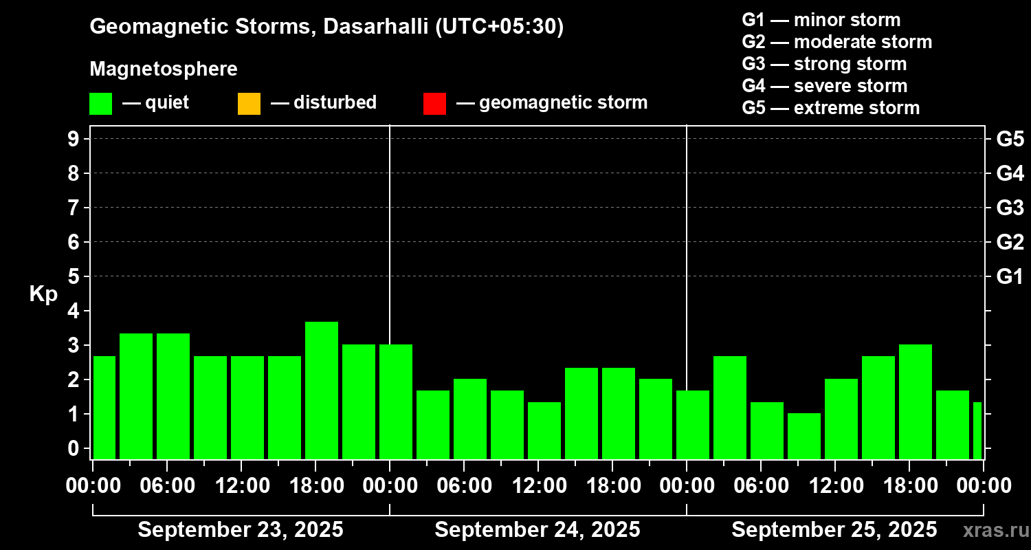 Geomagnetic storms in Dasarhalli on Sep 25, 2025