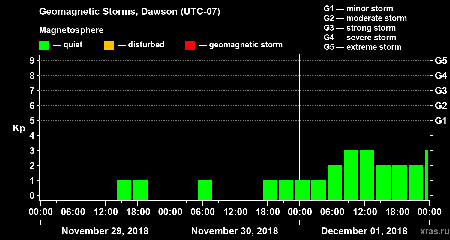 Geomagnetic storms in Dawson on Dec 01, 2018