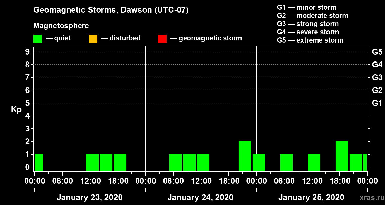 Geomagnetic storms in Dawson — Jan 25, 2020