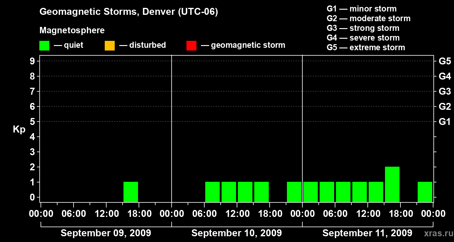 Changes in the geomagnetic index Kp from September 9 to 11, 2009 for mid latitudes