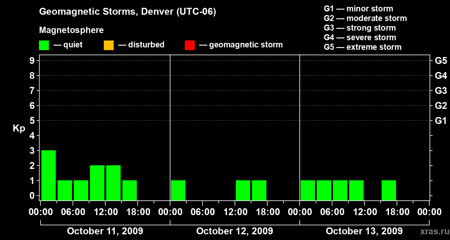 Changes in the geomagnetic index Kp from October 11 to 13, 2009 for mid latitudes