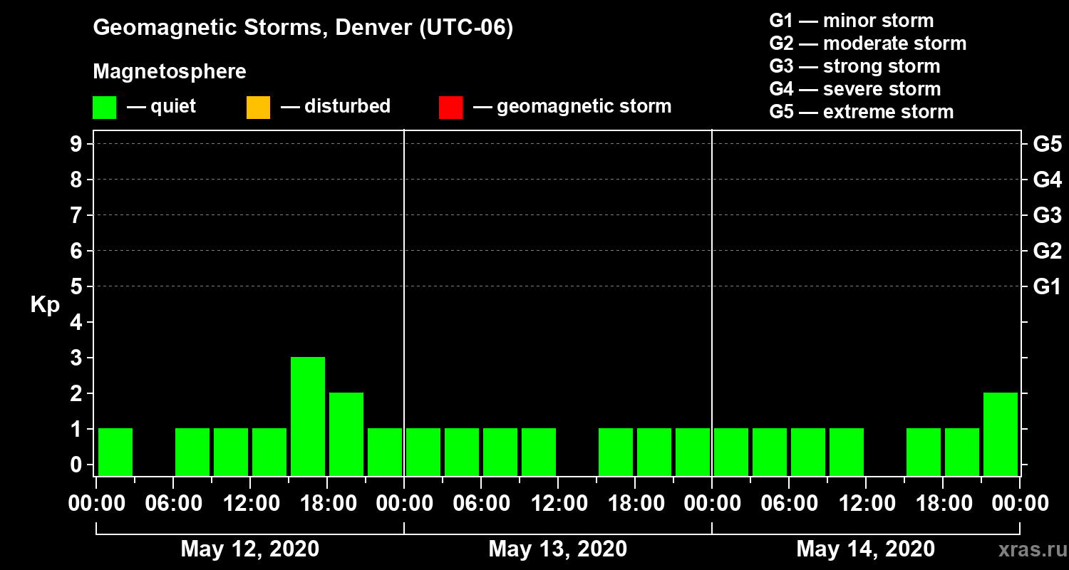 Changes in the geomagnetic index Kp from May 12 to 14, 2020 for mid latitudes