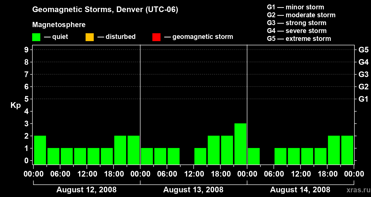 Geomagnetic storms in Denver in August 2008