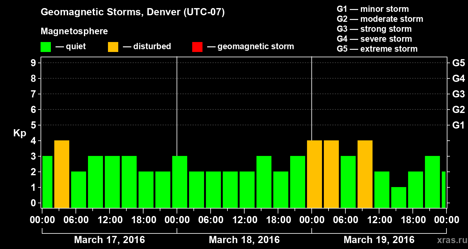 Geomagnetic storms in Denver in March 2016