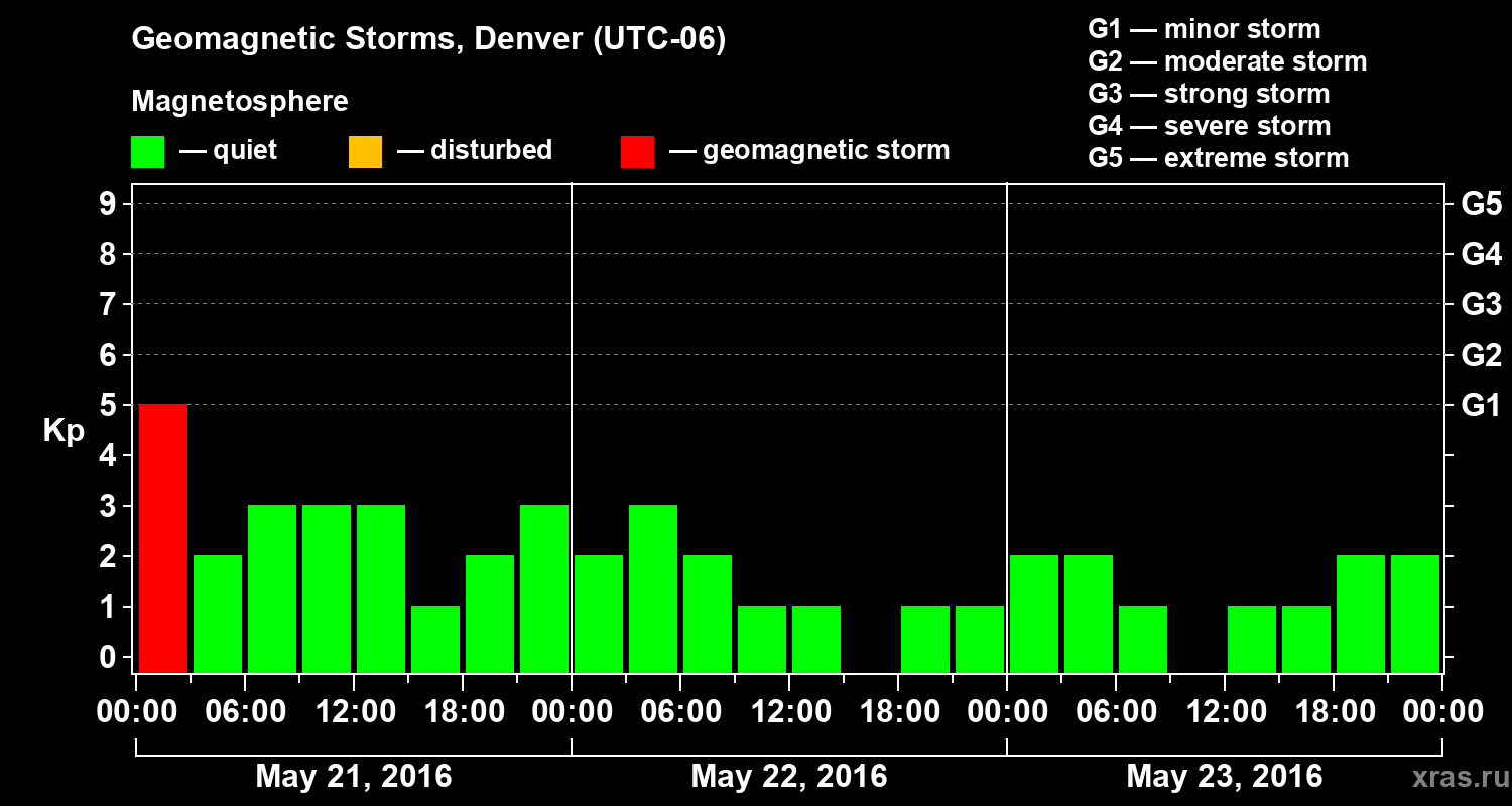 Geomagnetic storms in Denver on May 23, 2016