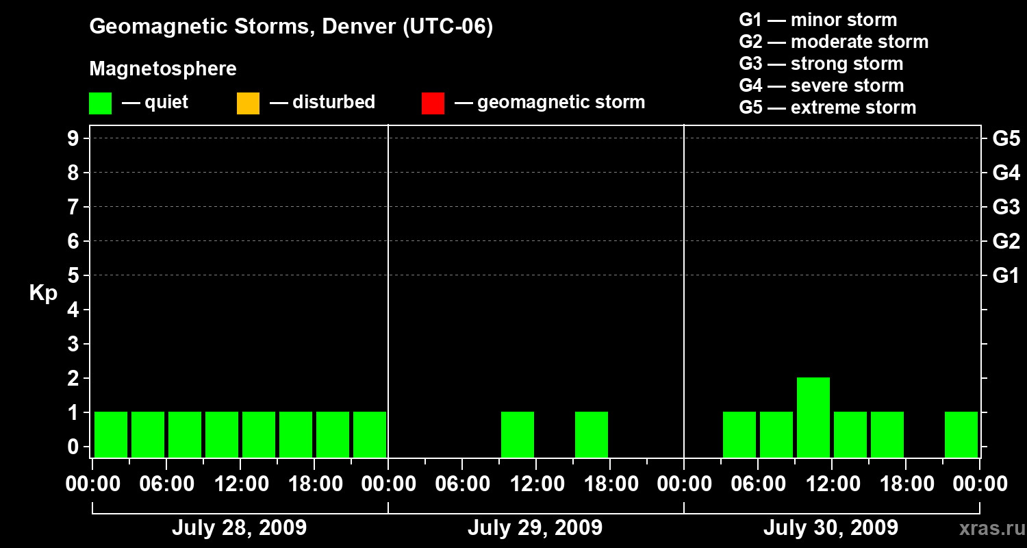 Geomagnetic storms in Denver on Jul 30, 2009