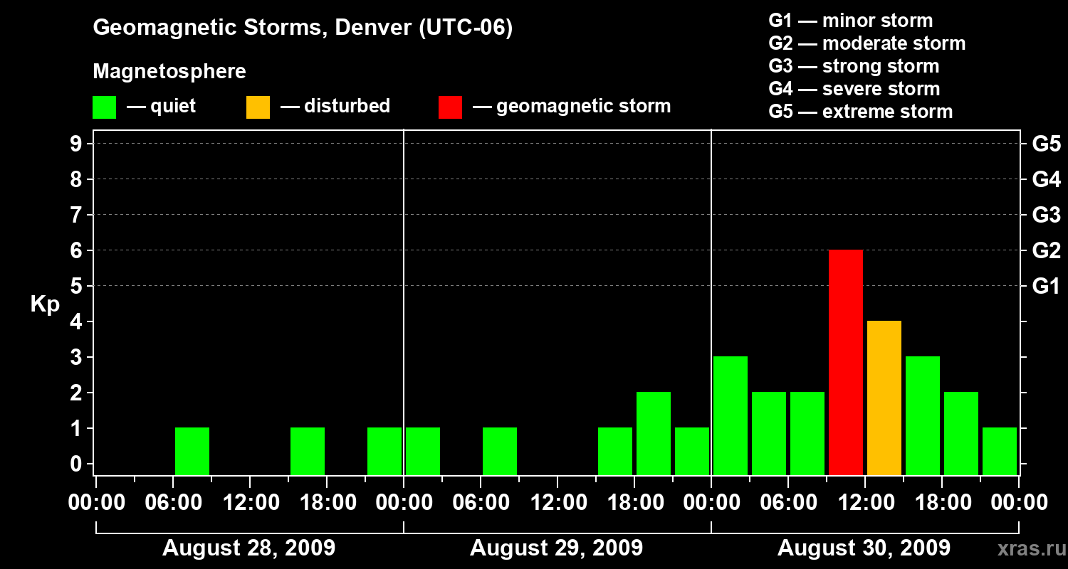 Geomagnetic storms in Denver on Aug 30, 2009