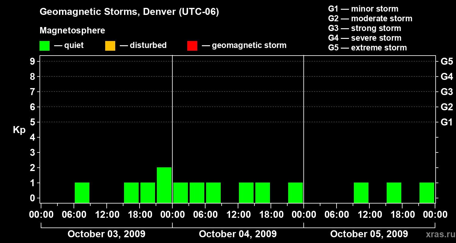 Changes in the geomagnetic index Kp from October 3 to 5, 2009 for mid latitudes