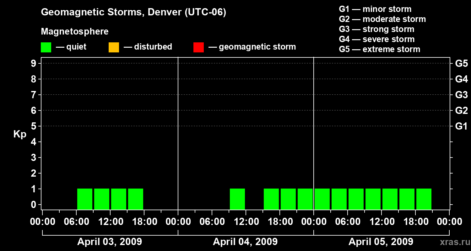 Changes in the geomagnetic index Kp from April 3 to 5, 2009 for mid latitudes