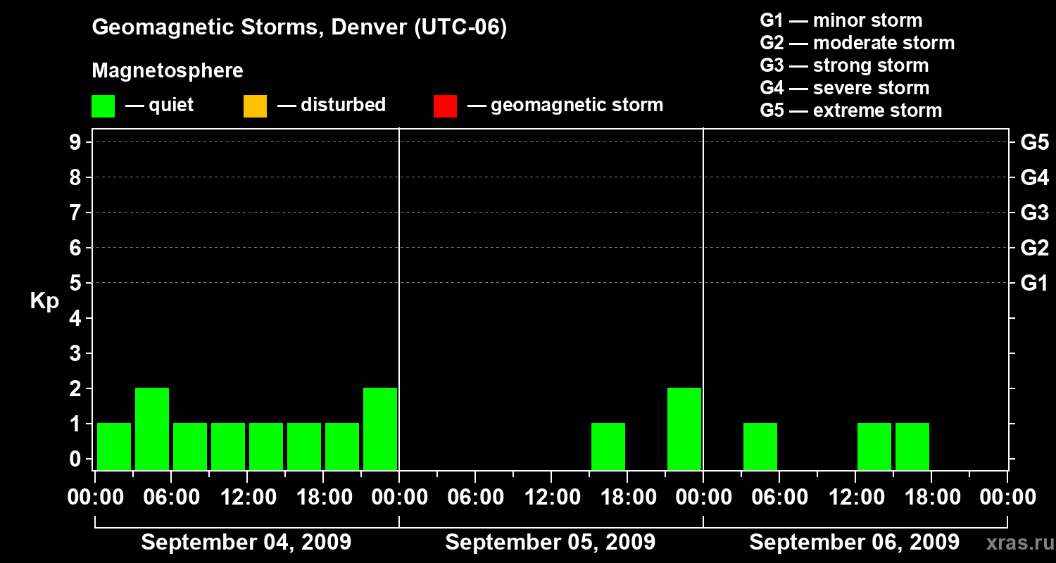Changes in the geomagnetic index Kp from September 4 to 6, 2009 for mid latitudes