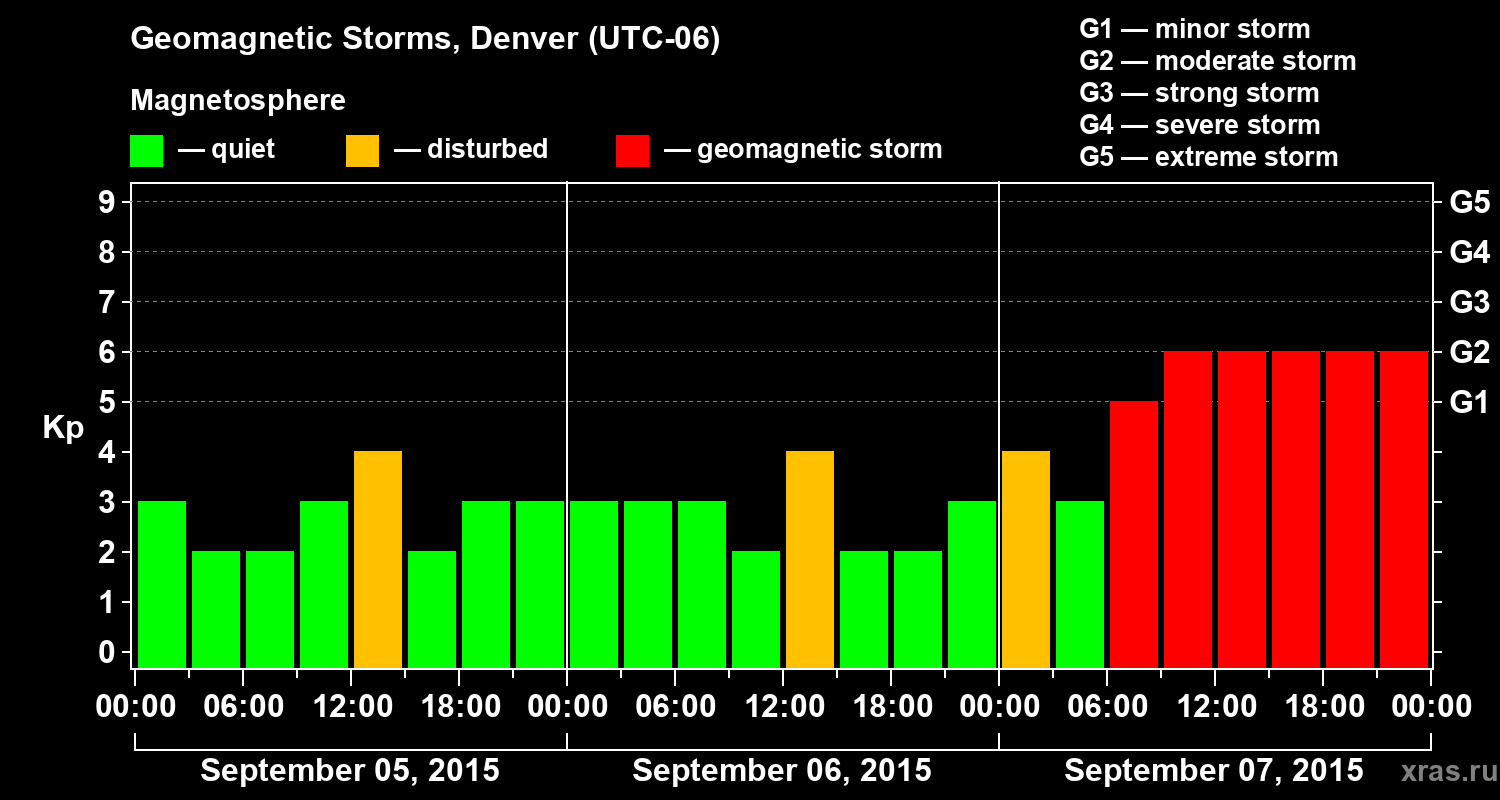 Changes in the geomagnetic index Kp from September 5 to 7, 2015 for mid latitudes