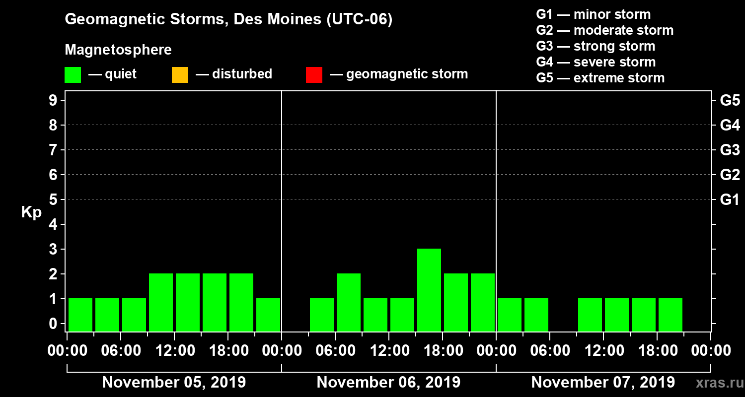 Geomagnetic storms in Des Moines in November 2019
