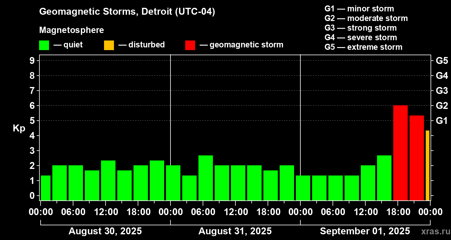 Geomagnetic storms in Detroit — Sep 01, 2025