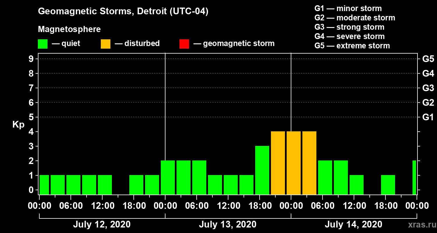 Geomagnetic storms in Detroit — Jul 14, 2020