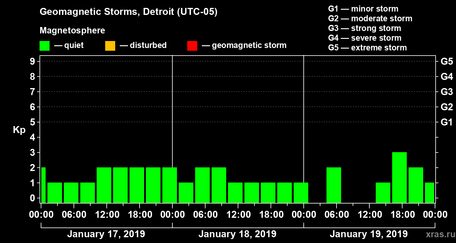 Geomagnetic storms in Detroit on Jan 19, 2019