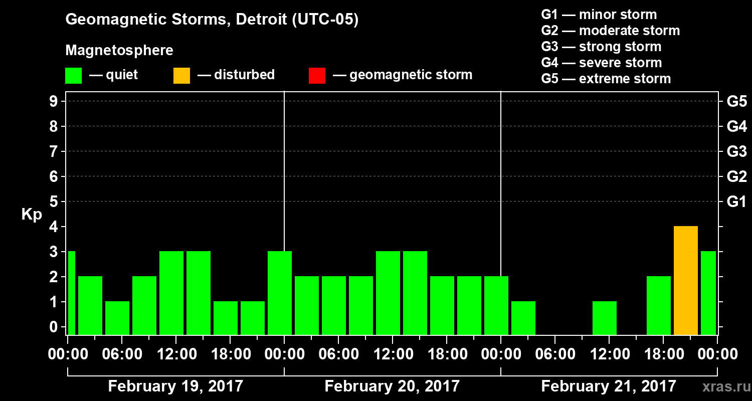 Geomagnetic storms in Detroit — Feb 21, 2017
