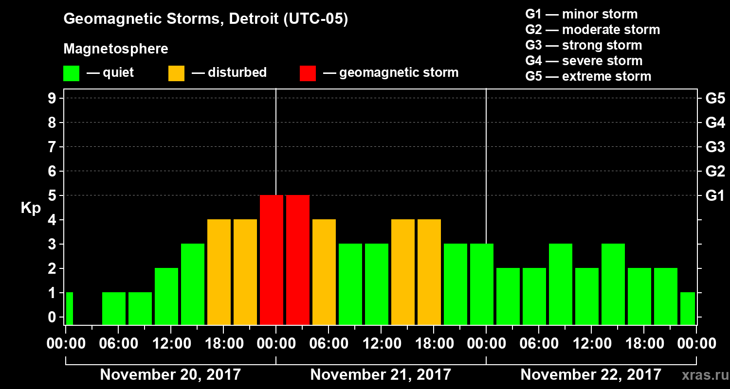Geomagnetic storms in Detroit — Nov 22, 2017