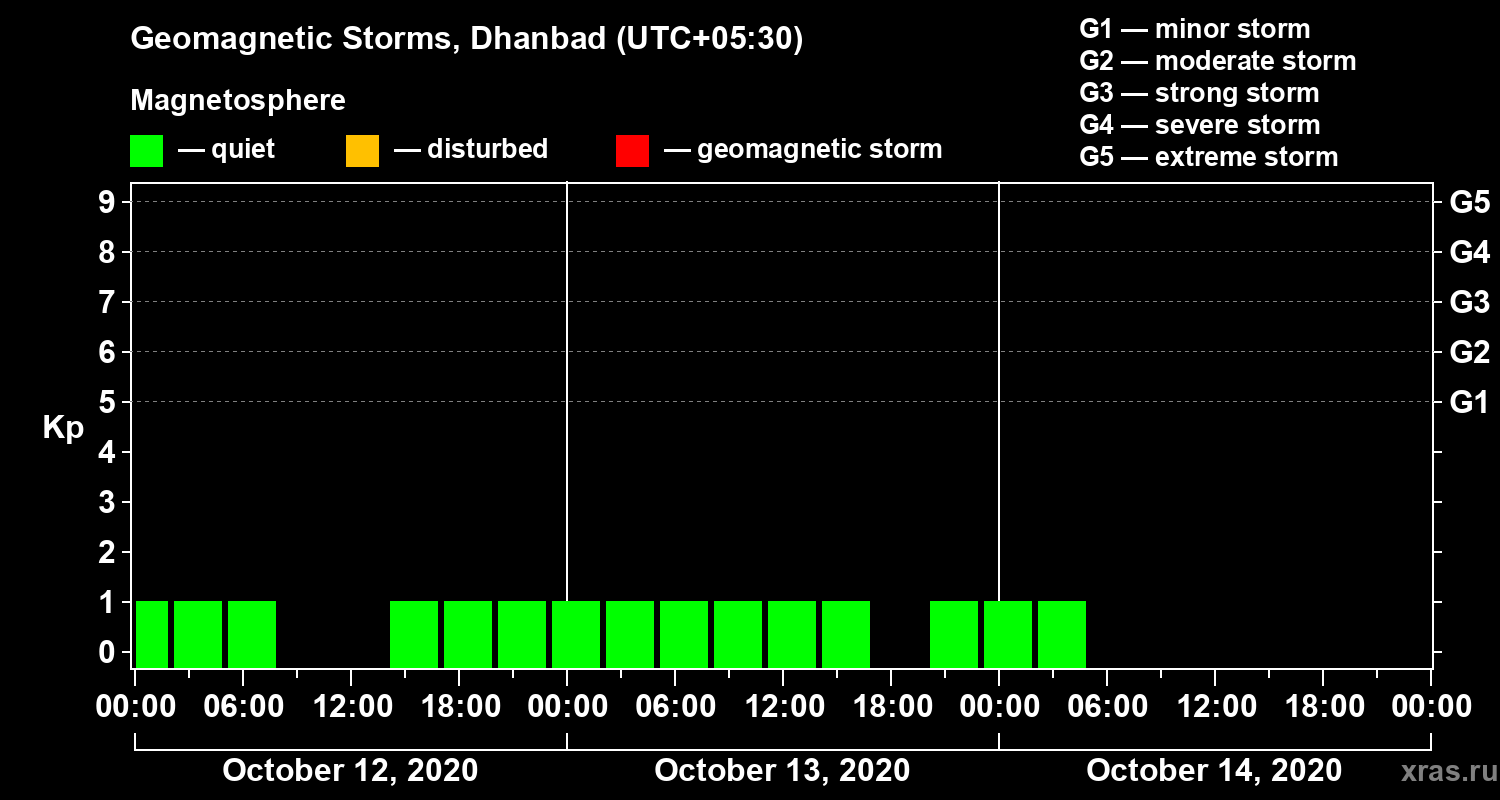 Geomagnetic storms in Dhanbad — Oct 14, 2020