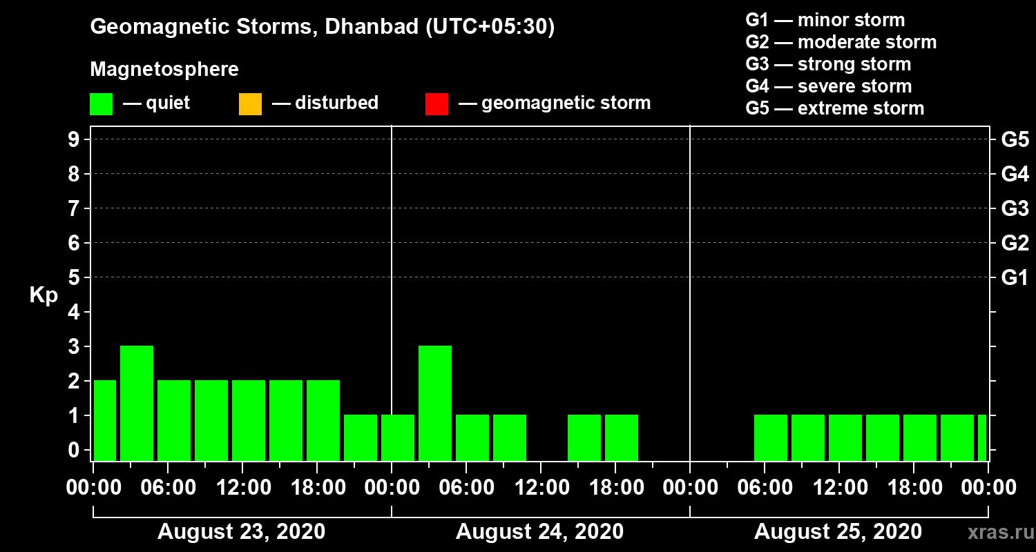 Geomagnetic storms in Dhanbad — Aug 25, 2020