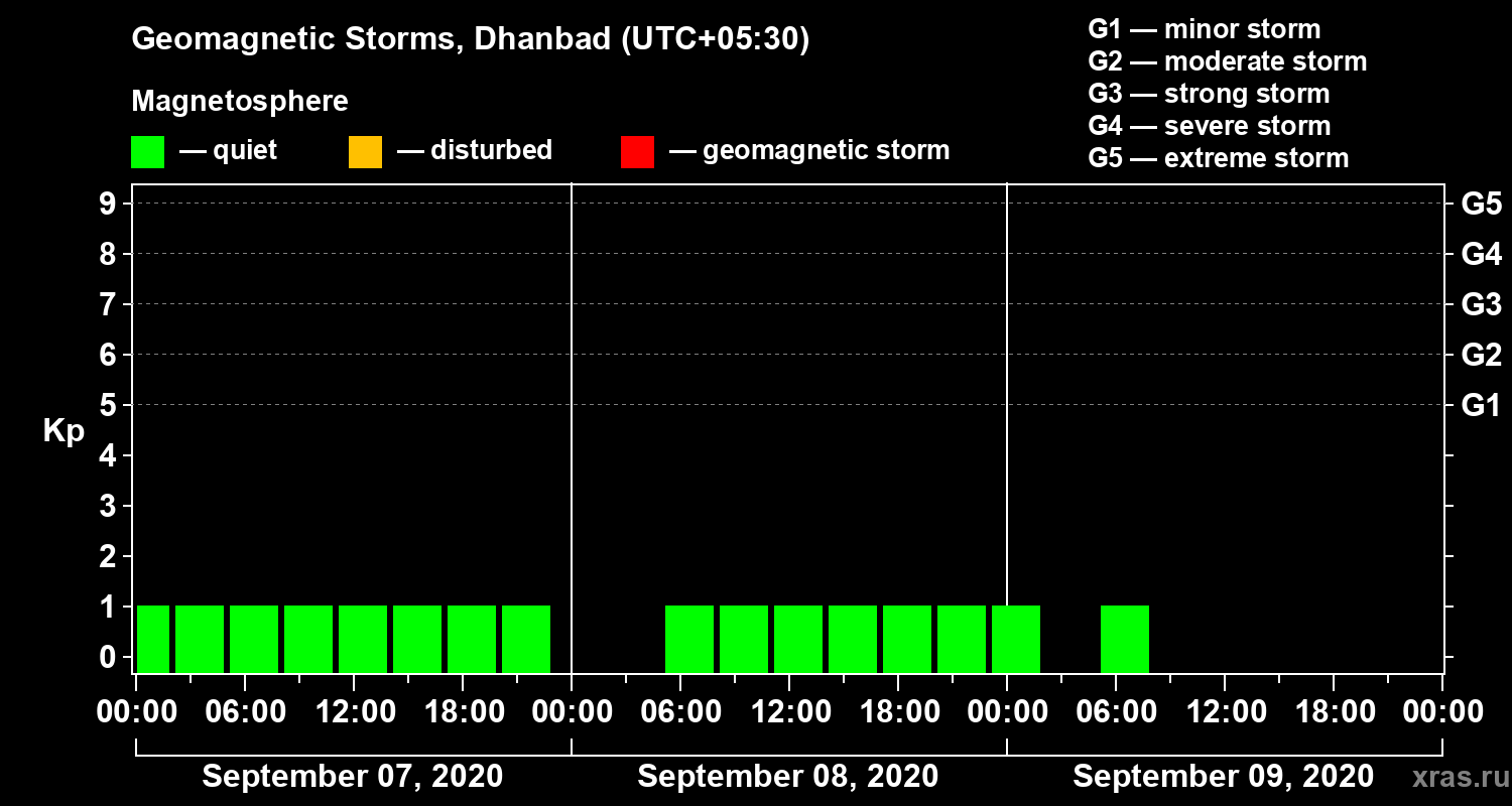 Geomagnetic storms in Dhanbad — Sep 09, 2020