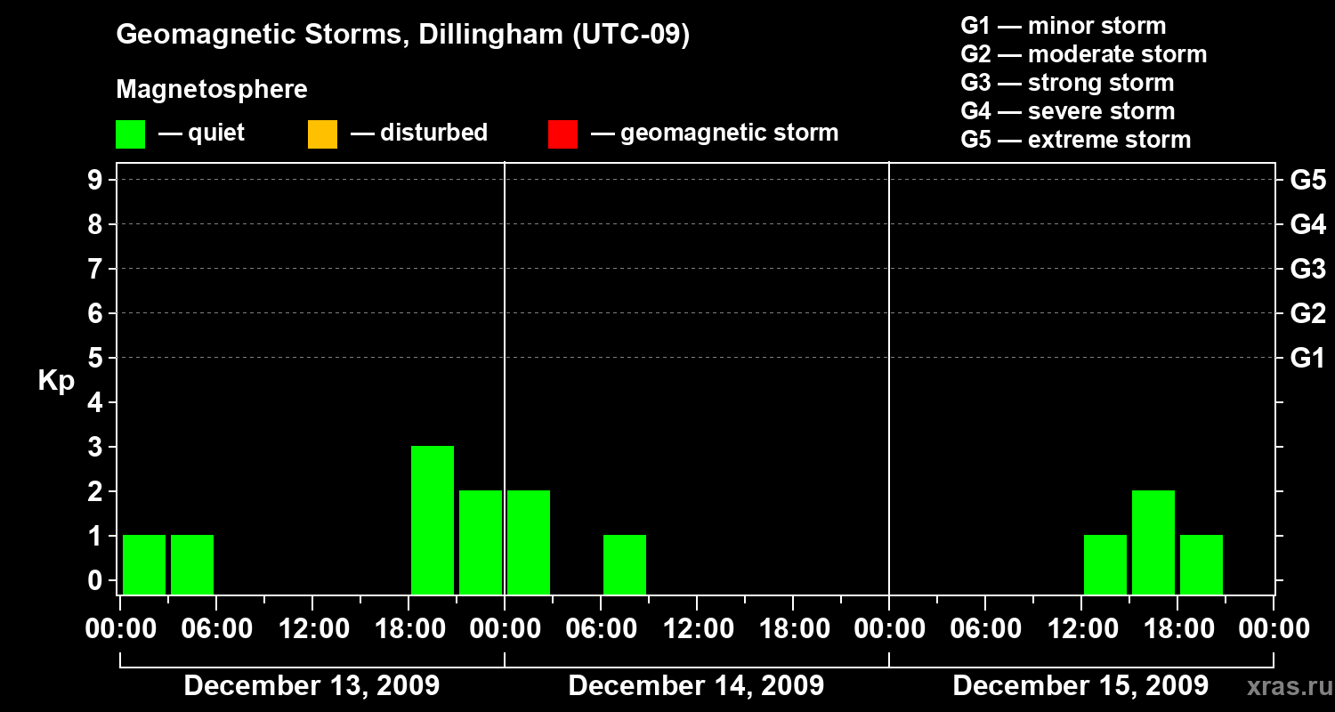 Geomagnetic storms in Dillingham in December 2009