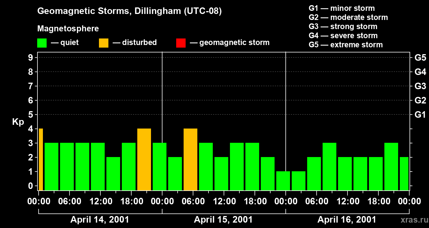 Geomagnetic storms in Dillingham — Apr 16, 2001