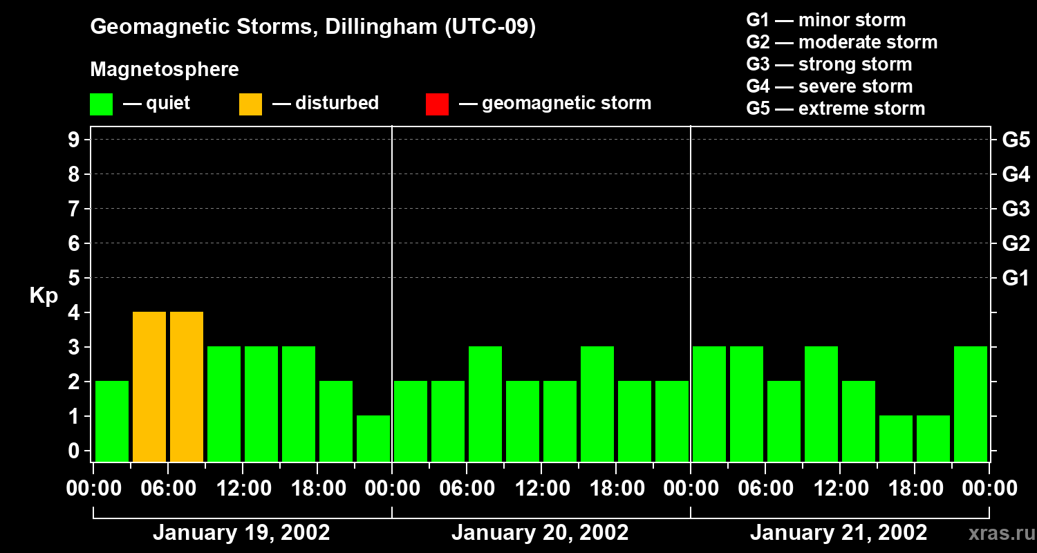 Geomagnetic storms in Dillingham — Jan 21, 2002