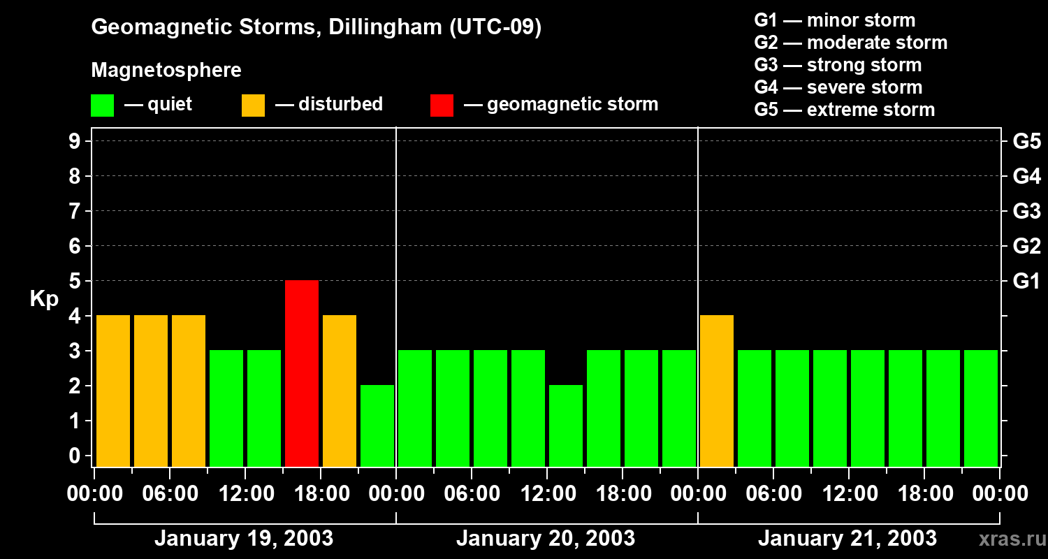 Geomagnetic storms in Dillingham — Jan 21, 2003