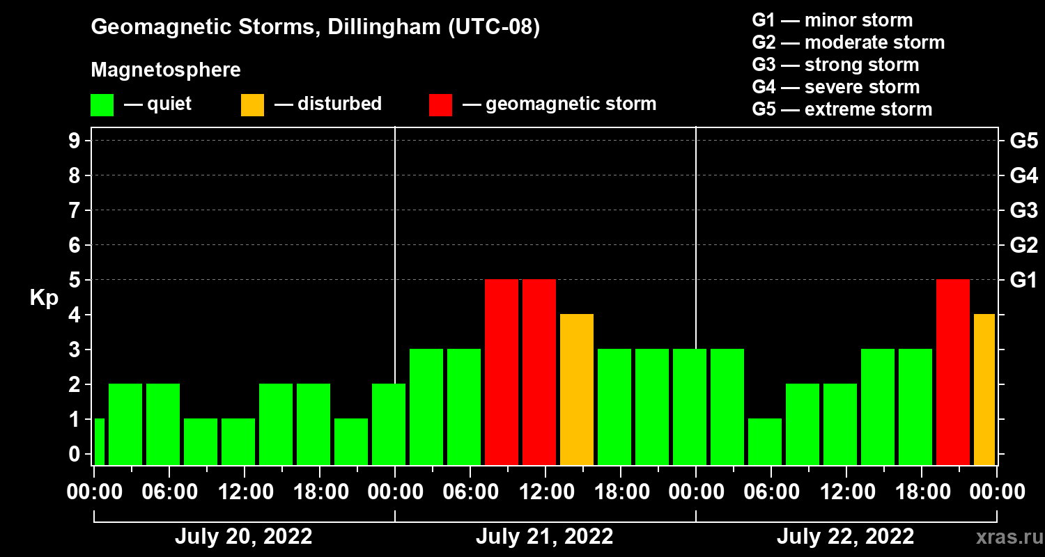 Geomagnetic storms in Dillingham on Jul 22, 2022
