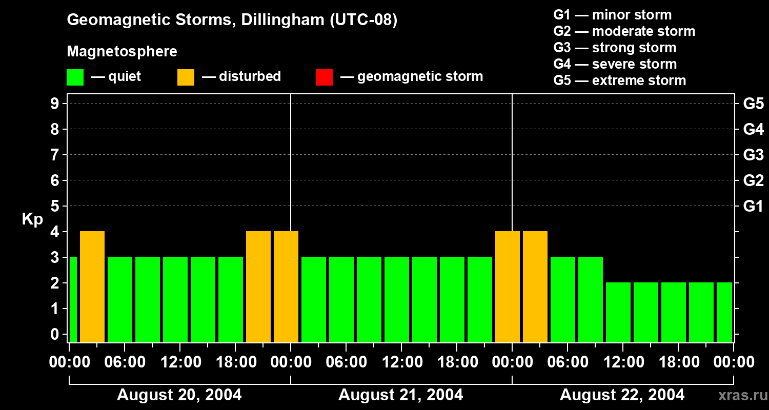 Geomagnetic storms in Dillingham — Aug 22, 2004