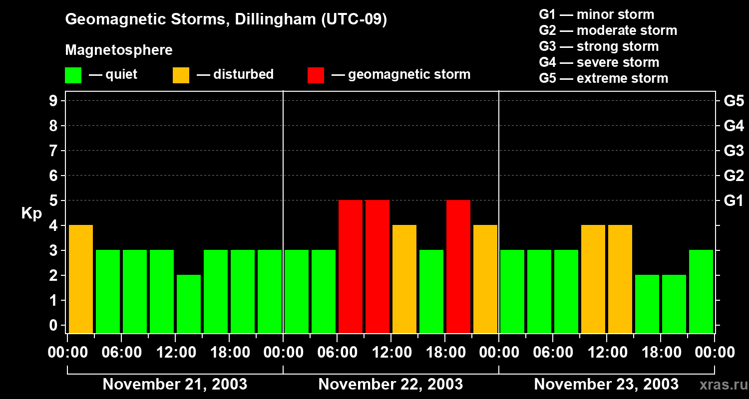 Geomagnetic storms in Dillingham — Nov 23, 2003