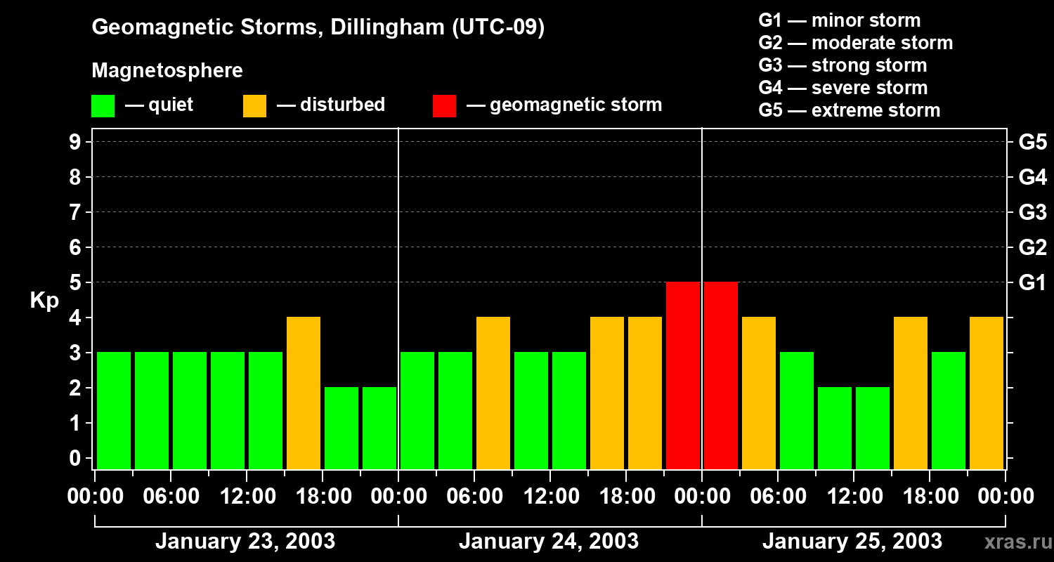 Geomagnetic storms in Dillingham — Jan 25, 2003
