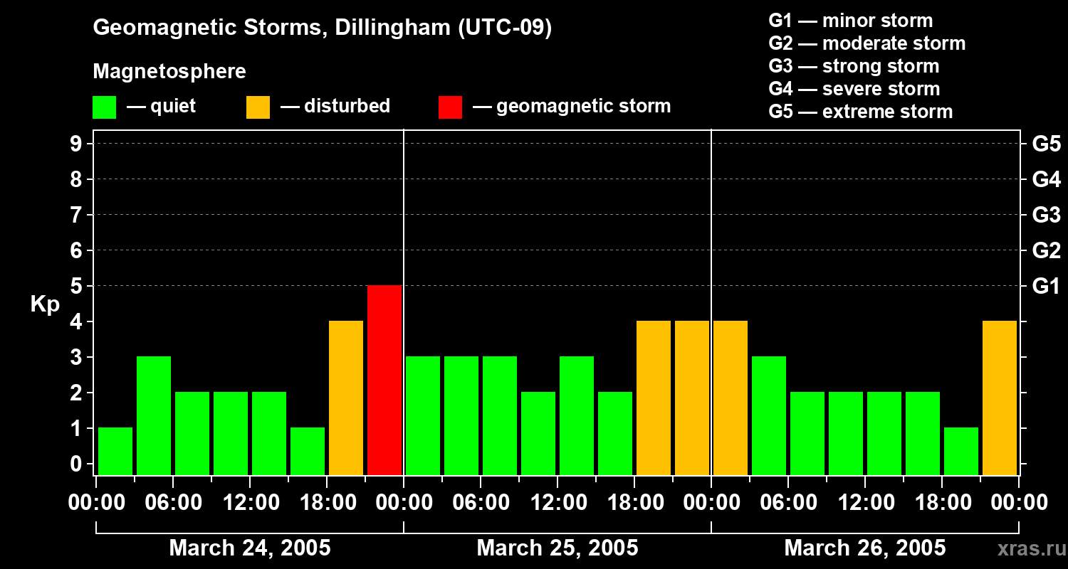 Geomagnetic storms in Dillingham — Mar 26, 2005