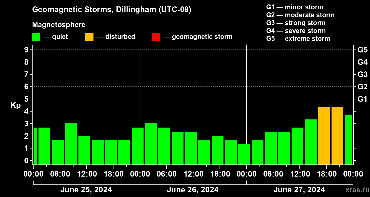 Geomagnetic storms in Dillingham on Jun 27, 2024