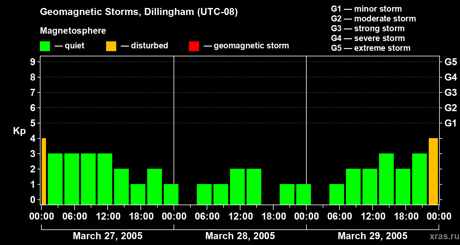 Geomagnetic storms in Dillingham — Mar 29, 2005