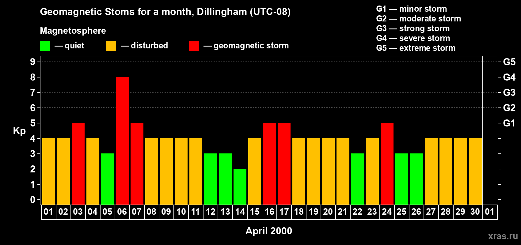 Geomagnetic storms in Dillingham — Apr 29, 2000