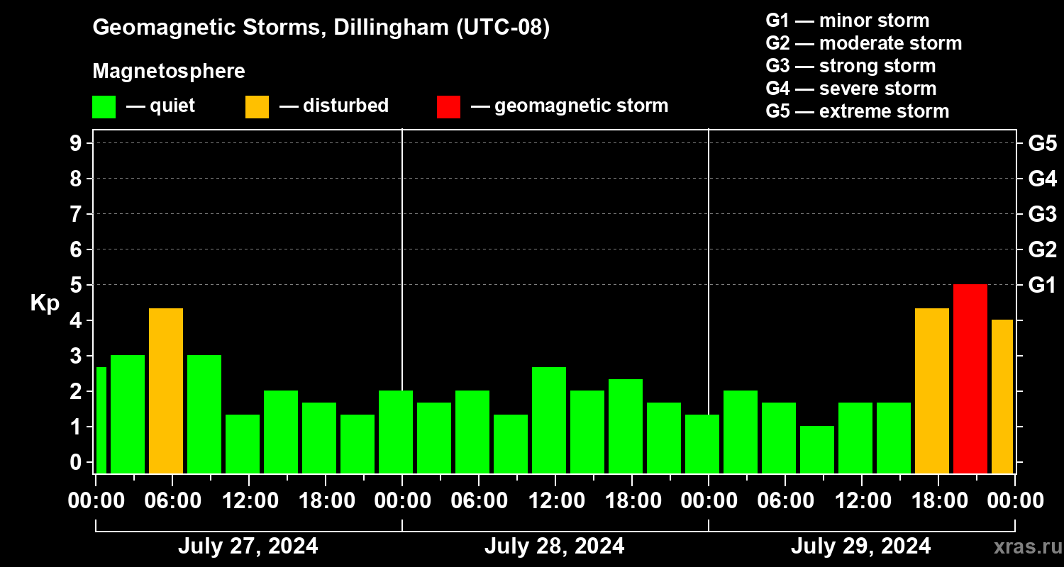 Geomagnetic storms in Dillingham on Jul 29, 2024