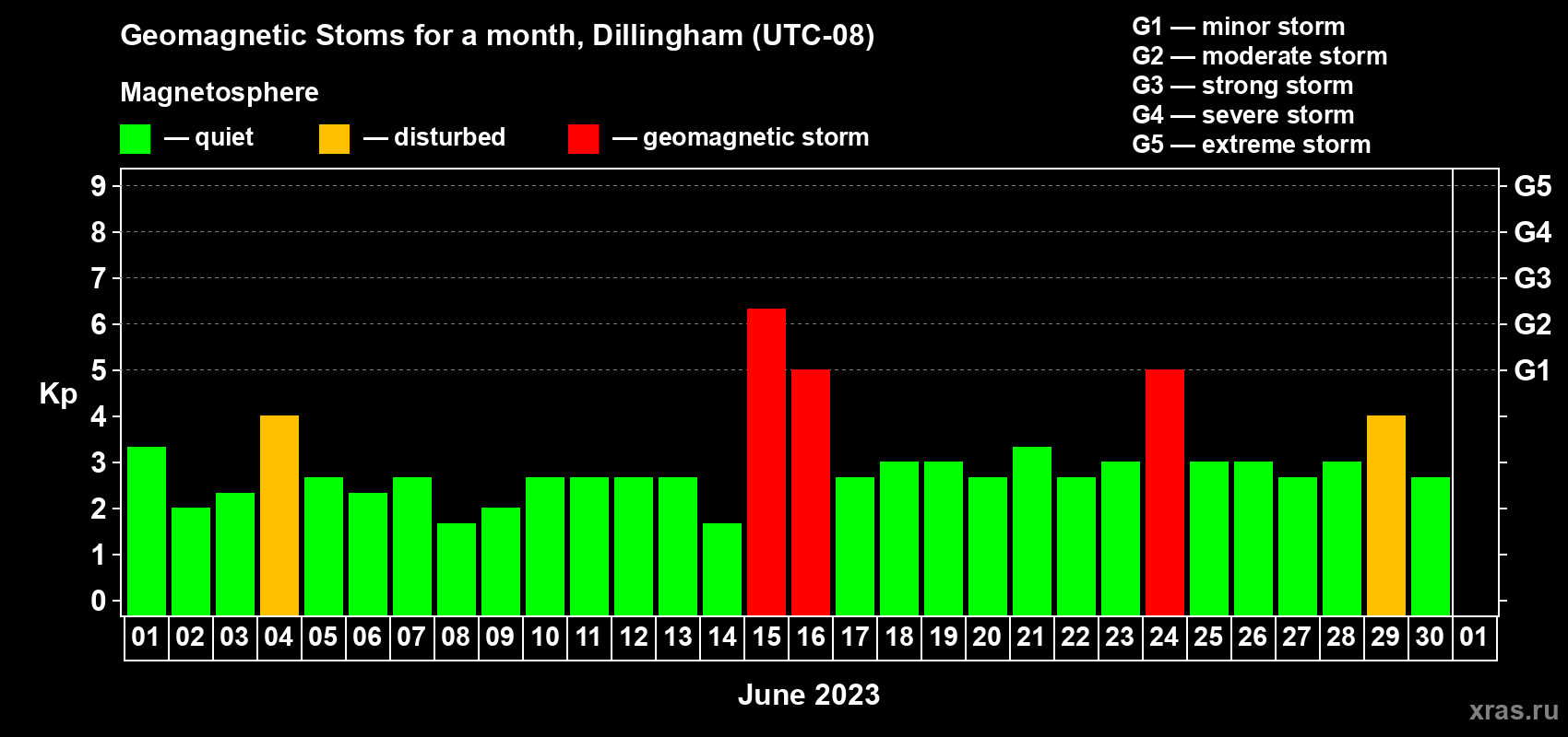 Geomagnetic storms in Dillingham in June 2023