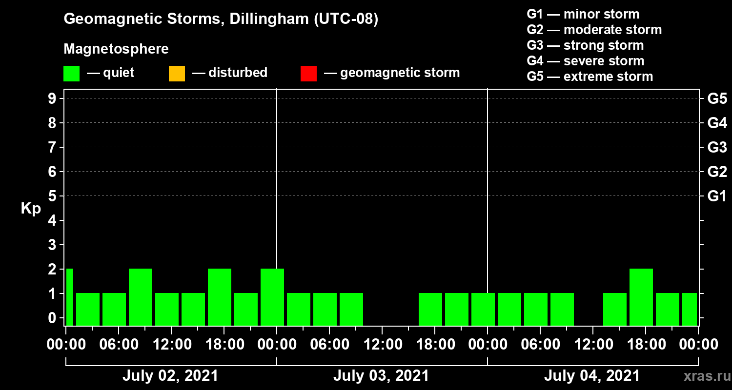 Geomagnetic storms in Dillingham on Jul 04, 2021