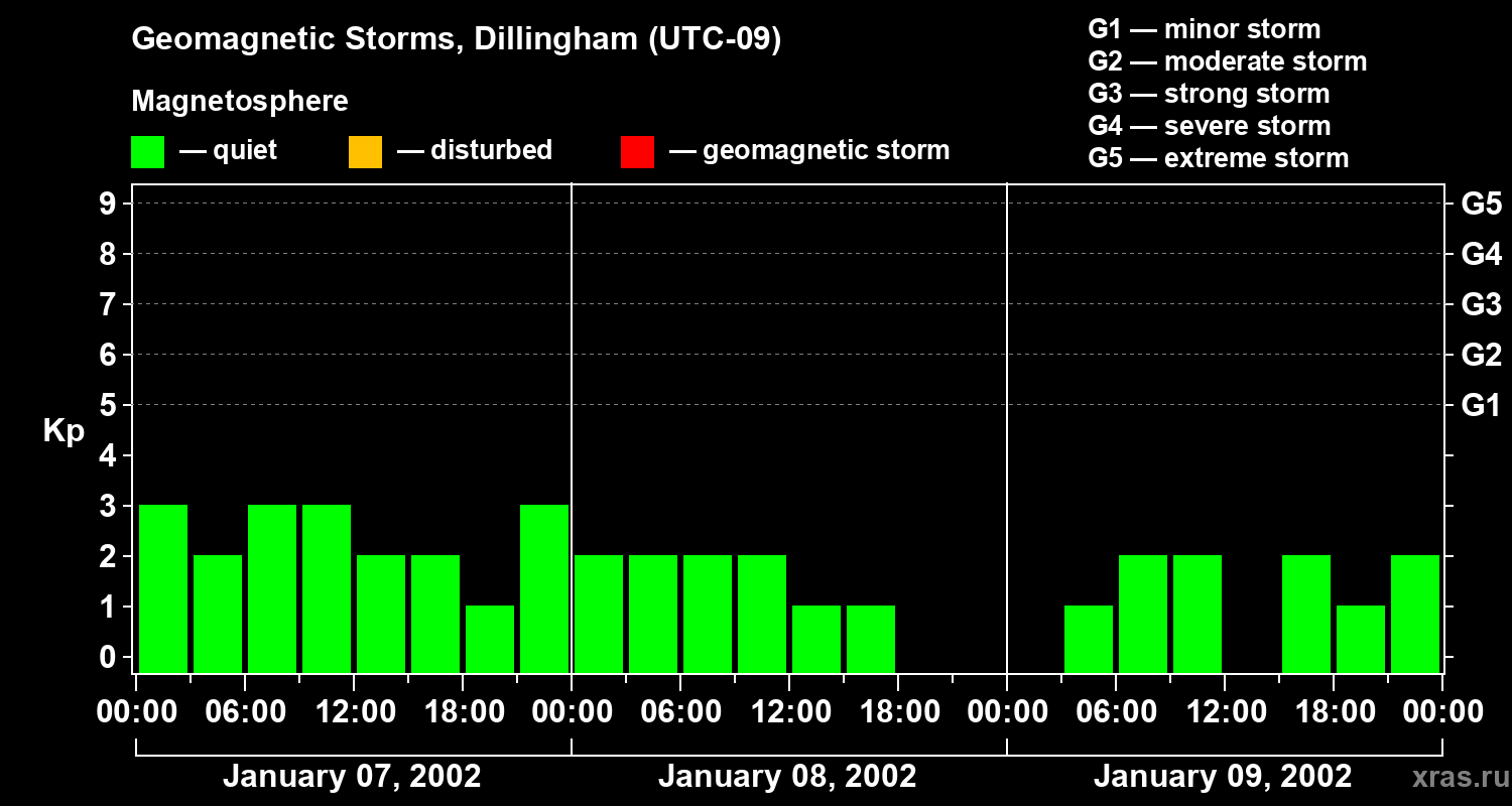 Geomagnetic storms in Dillingham on Jan 09, 2002
