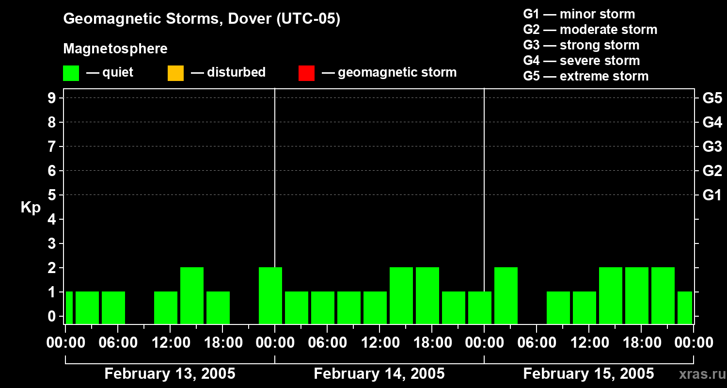 Geomagnetic storms in Dover in February 2005