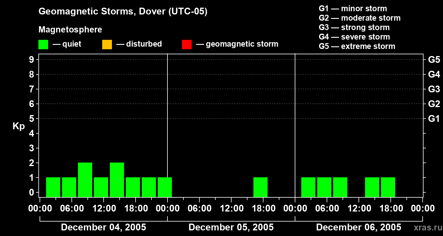 Changes in the geomagnetic index Kp from December 4 to 6, 2005 for mid latitudes