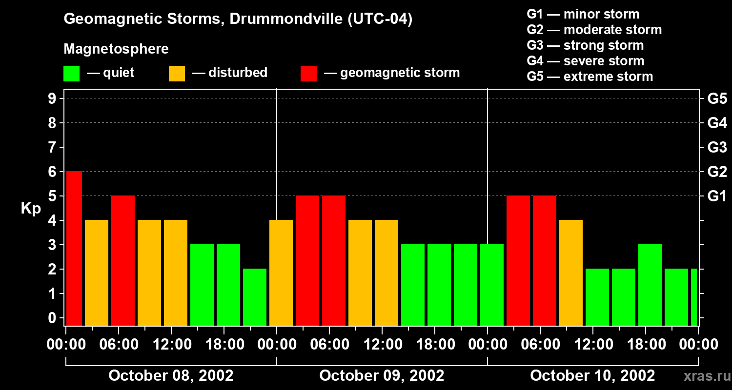 Geomagnetic storms in Drummondville on Oct 10, 2002
