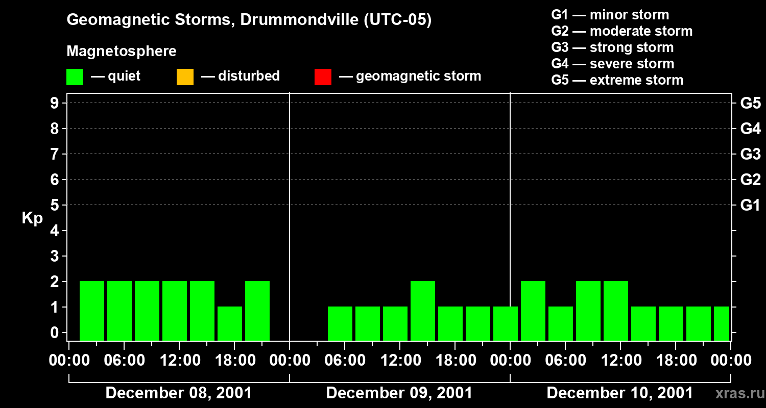 Geomagnetic storms in Drummondville on Dec 10, 2001