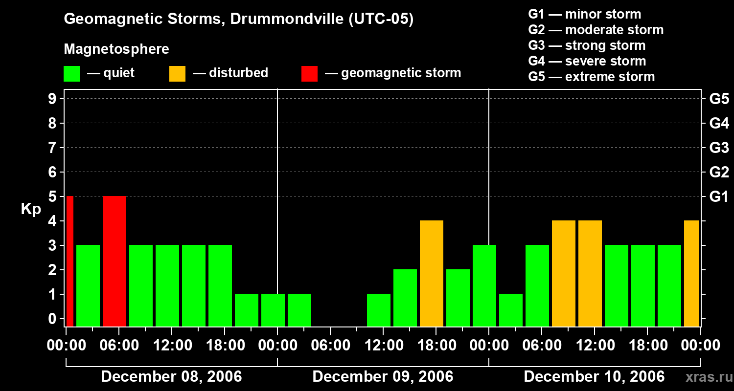 Geomagnetic storms in Drummondville on Dec 10, 2006